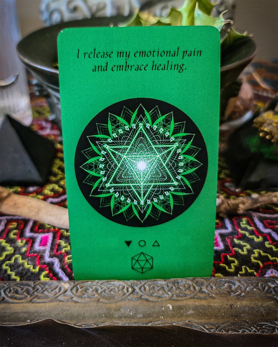 Surrender Affirmation: “I release my emotional pain and embrace healing”Chakra: AnahataEnergetic State: Under-ActivePlatonic Solid: Icosahedron This card points to an underactive Anahata, the heart chakra. When this center goes quiet,
