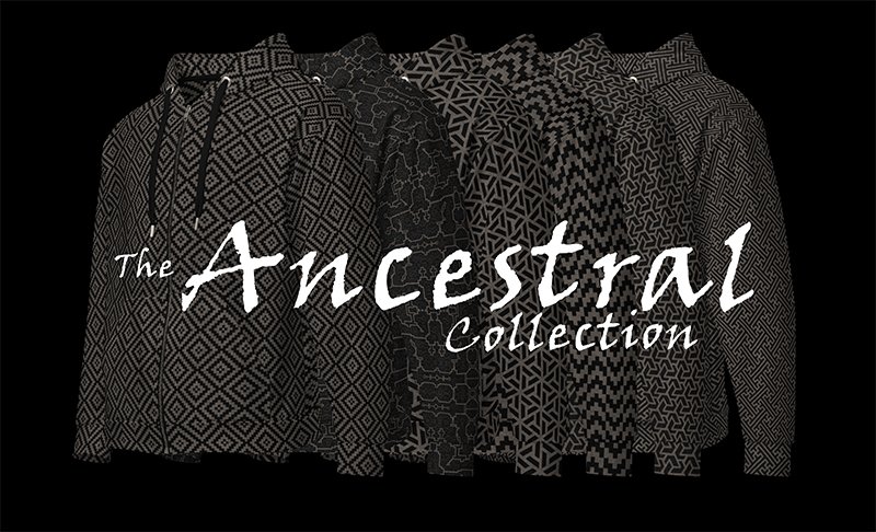 This collection is the protege to the Frequencies collection, same outfit concept but with a more grounded feel and based upon geometric cultural patterns and motifs paying homage to North American Natives, The Indigenous Shipibo, Muslim Worlds, Huichol, Celts & Asian cultures. Mix/Match Tops, Bottoms & Accessories to create unique cross-cultural statements! (6 Statements)