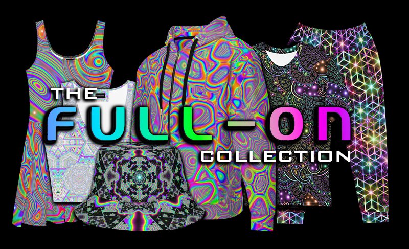 Full-On Psychedelic. This Collection is Vivid, Bold & Mind-Bending. The Full-On Collection is perfect for those who have no restraint on how they want to express themselves. This is my loudest & Trippiest collection and my most popular one. (16 All-Over Patterns)