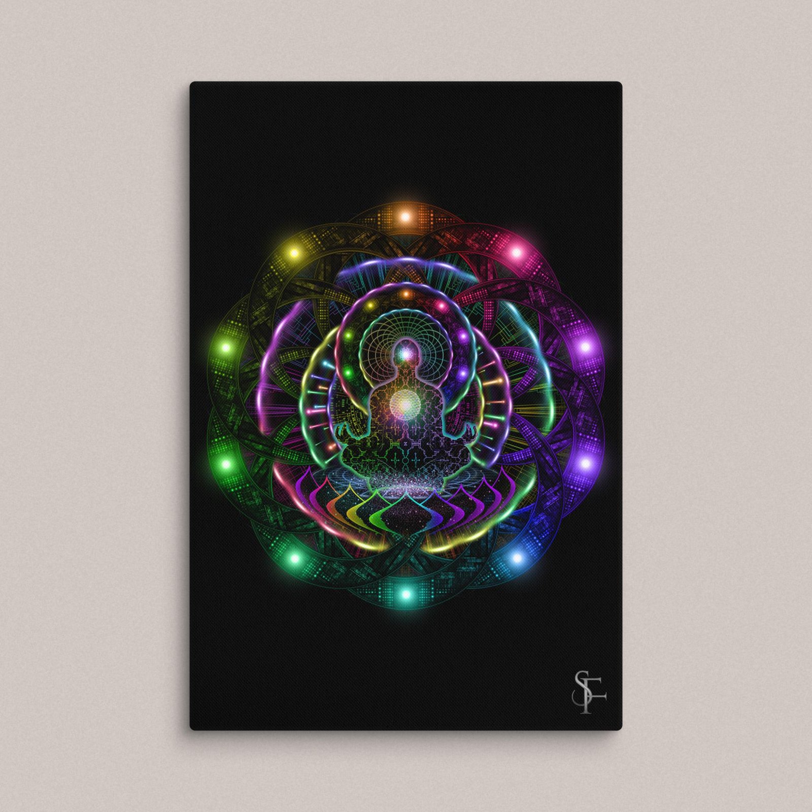 This giclee canvas print is made for spaces that invite both attention and introspection, including altars, meditation rooms, personal sanctuaries, and gathering spaces where atmosphere matters. If you are looking for psychedelic wall art that feels intentional, elevated, and immersive, this piece is built to anchor the room.