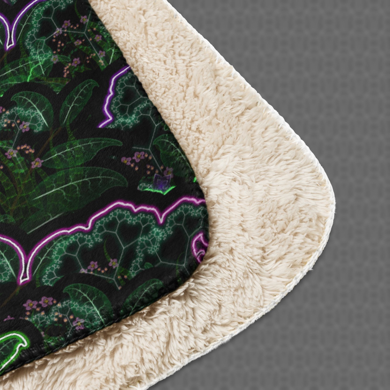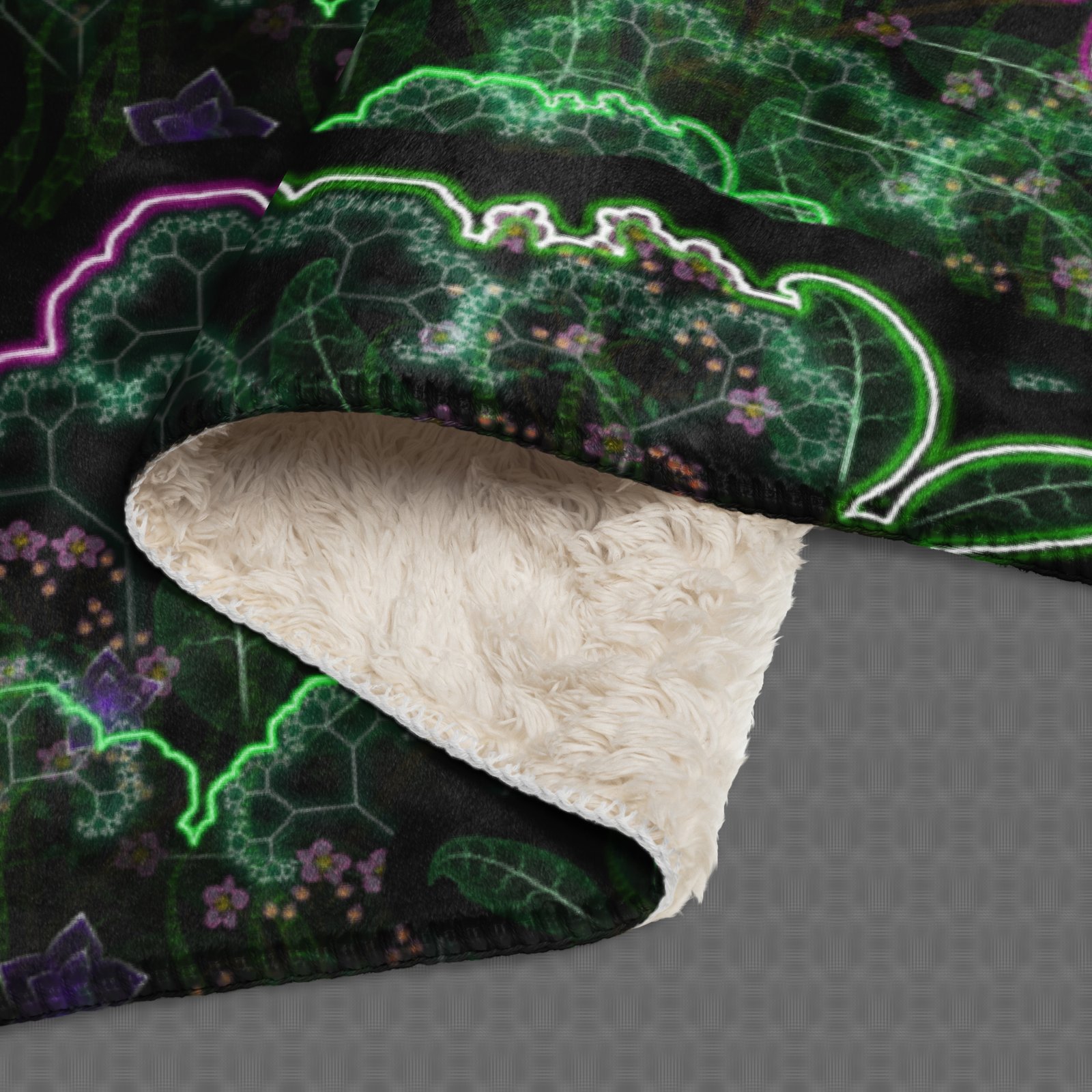 Whether you’re curled up at home, traveling, or spreading it out at a festival, this soft sherpa blanket is your go-to companion. Large enough to cover one person in cozy comfort or spacious enough to share, it also doubles as a protective ground covering for groups. Its UV/RGB light-reactive surface makes it an essential for music festivals, glowing vividly under blacklight. Crafted from recycled material, this eco-conscious blanket doesn’t just look good—it does good. Vibrant, durable, and fade-proof, this blanket is made for adventures that last a lifetime. Measures 57×77″