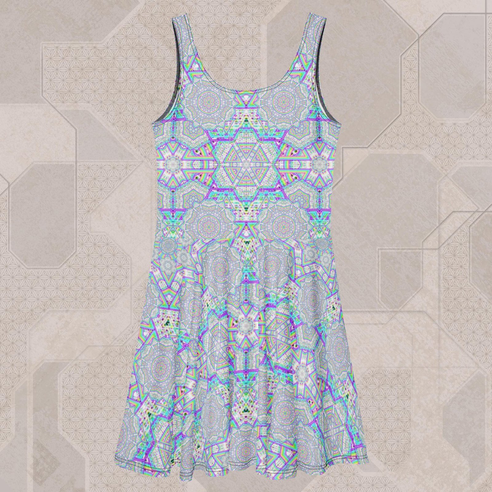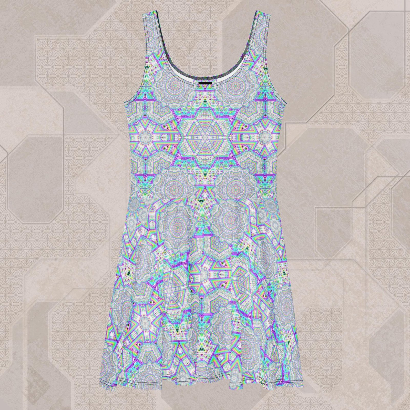 This flared psychedelic skirt is made to move with you. Crafted in the USA from recycled plastic bottles, it features a soft, breathable fabric with a vibrant UV-reactive print that won’t fade over time.
