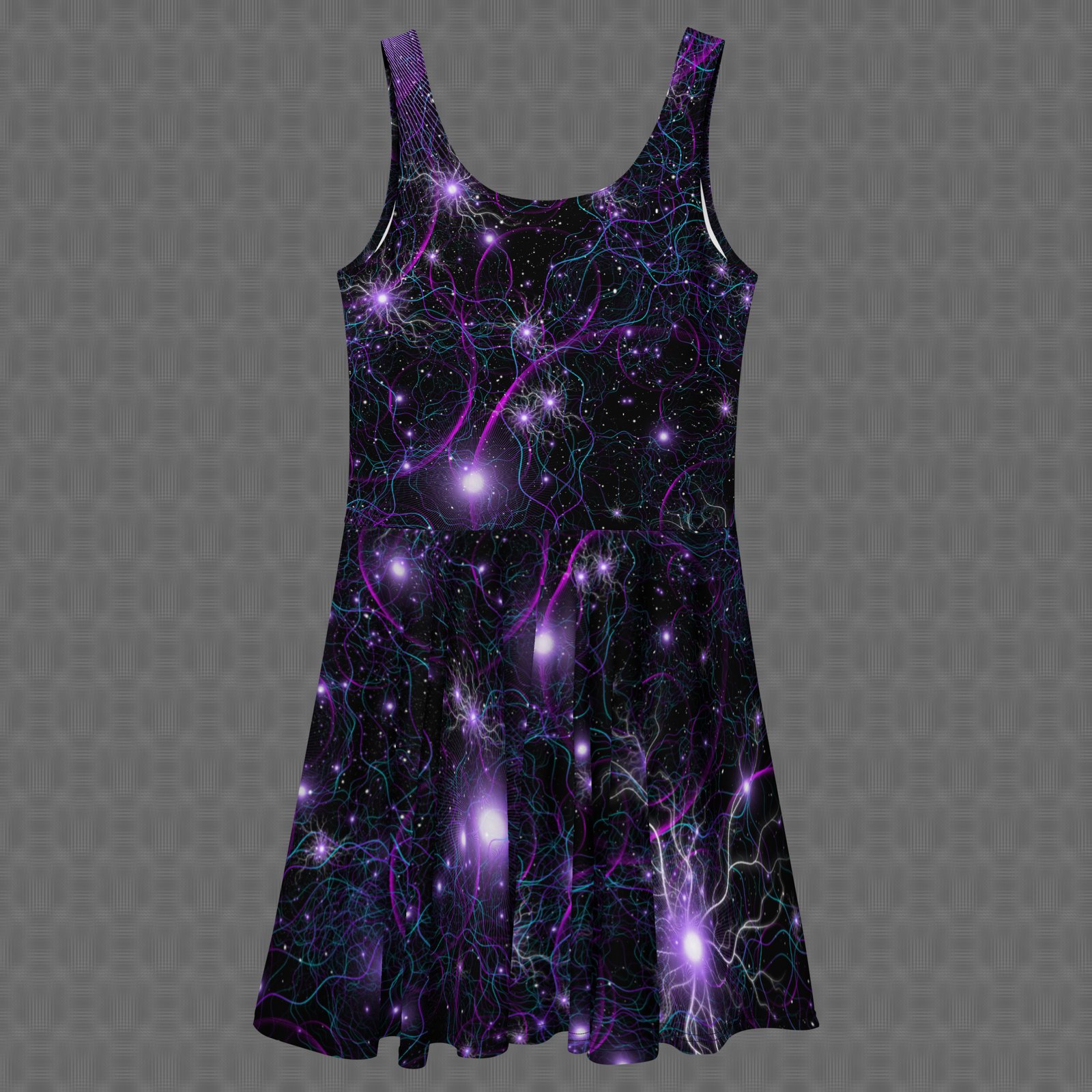 This flared psychedelic skirt is made to move with you. Crafted in the USA from recycled plastic bottles, it features a soft, breathable fabric with a vibrant UV-reactive print that wonโ€™t fade over time.
