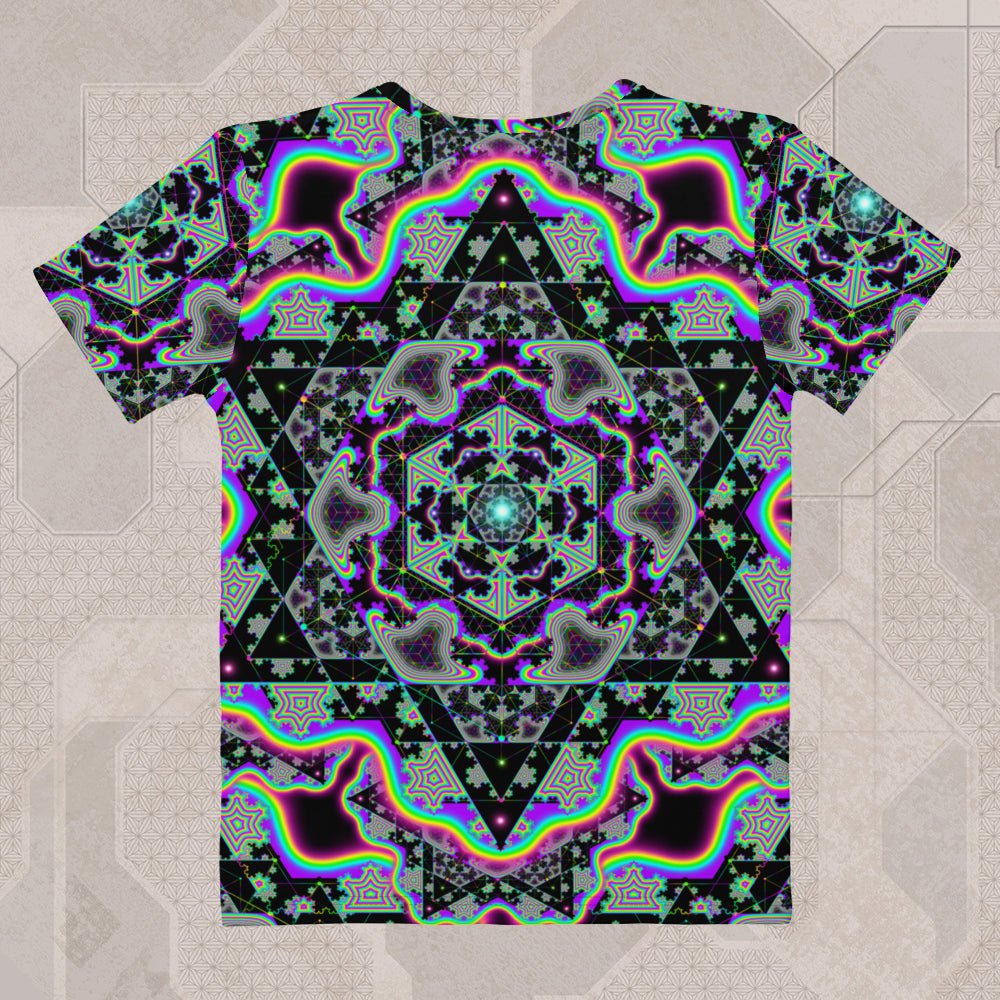 The psychedelic print is UV-reactive and sublimated so the colors stay vivid and alive, no matter how often you wear it. Every shirt is precision cut and hand-sewn so the artwork flows clean across the seams — no broken lines, just pure uninterrupted art. It’s crafted for festivals, streetwear, and everyday adventures. Vivid, comfortable, unapologetically mind-expanding.