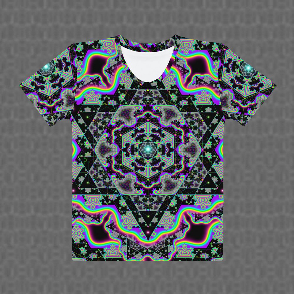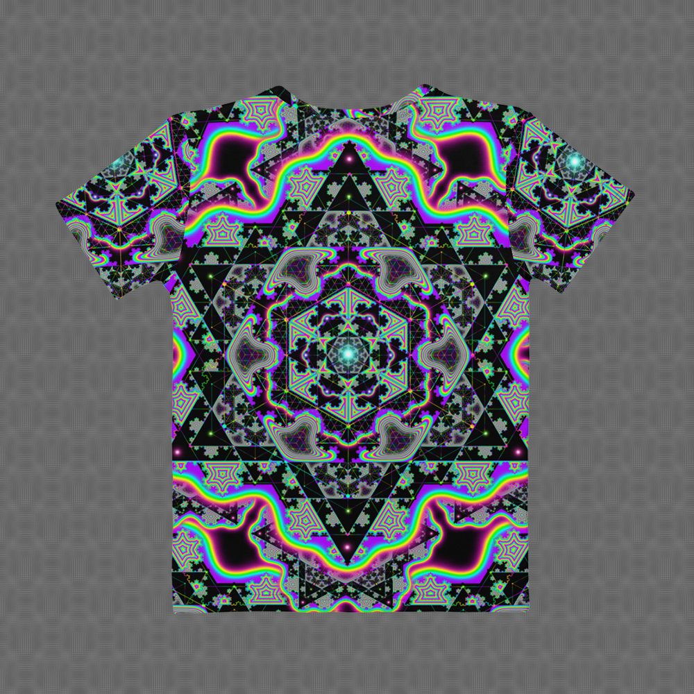 The psychedelic print is UV-reactive and sublimated so the colors stay vivid and alive, no matter how often you wear it. Every shirt is precision cut and hand-sewn so the artwork flows clean across the seams โ€” no broken lines, just pure uninterrupted art. Itโ€™s crafted for festivals, streetwear, and everyday adventures. Vivid, comfortable, unapologetically mind-expanding.