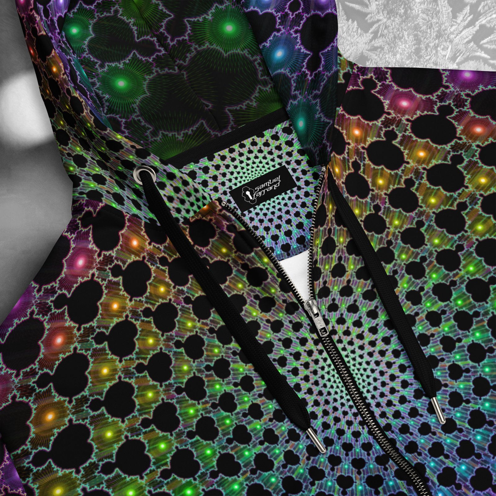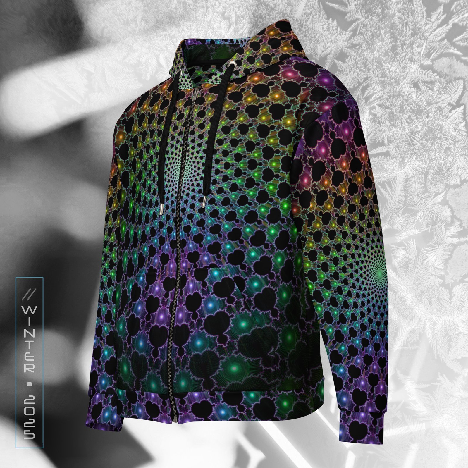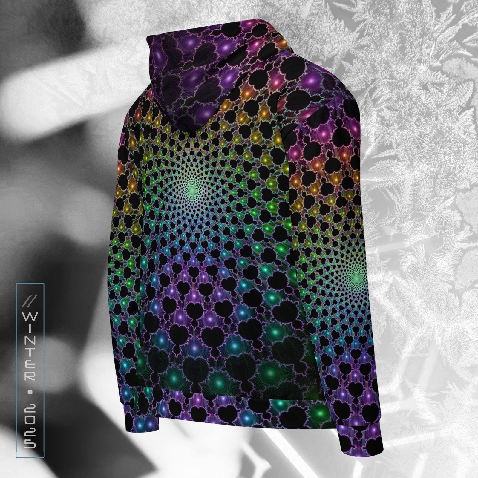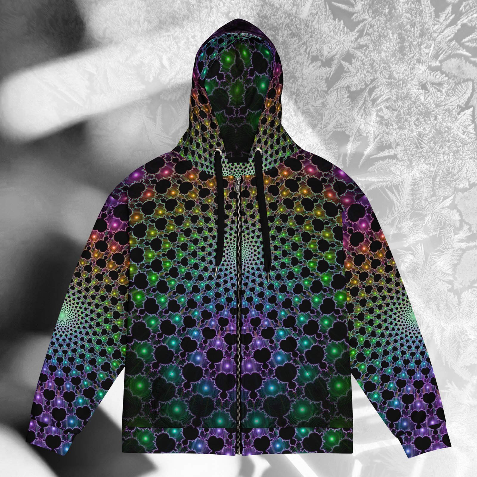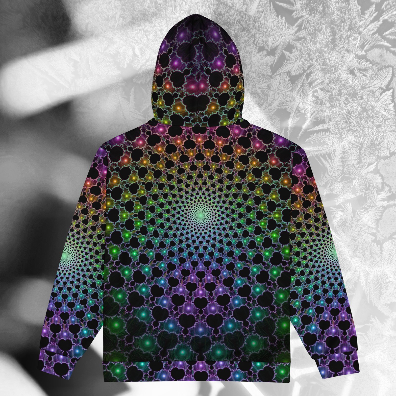 This mind-bending woven thread of neon energy, is designed to channel the look of a visionary experience with vivid psychedelic colors and detail. Made from GRS-certified recycled polyester, it features a smooth cotton-feel exterior with a plush fleece interior for lasting comfort. Its UV-reactive, fade-resistant print glows under blacklight, keeping the colors sharp and vibrant day or night. With a relaxed fit, dropped shoulders, and triple-stitched seams, it’s built for durability and style. Perfect for festivals, streetwear, or downtime. Made to order to cut waste and keep fashion sustainable.