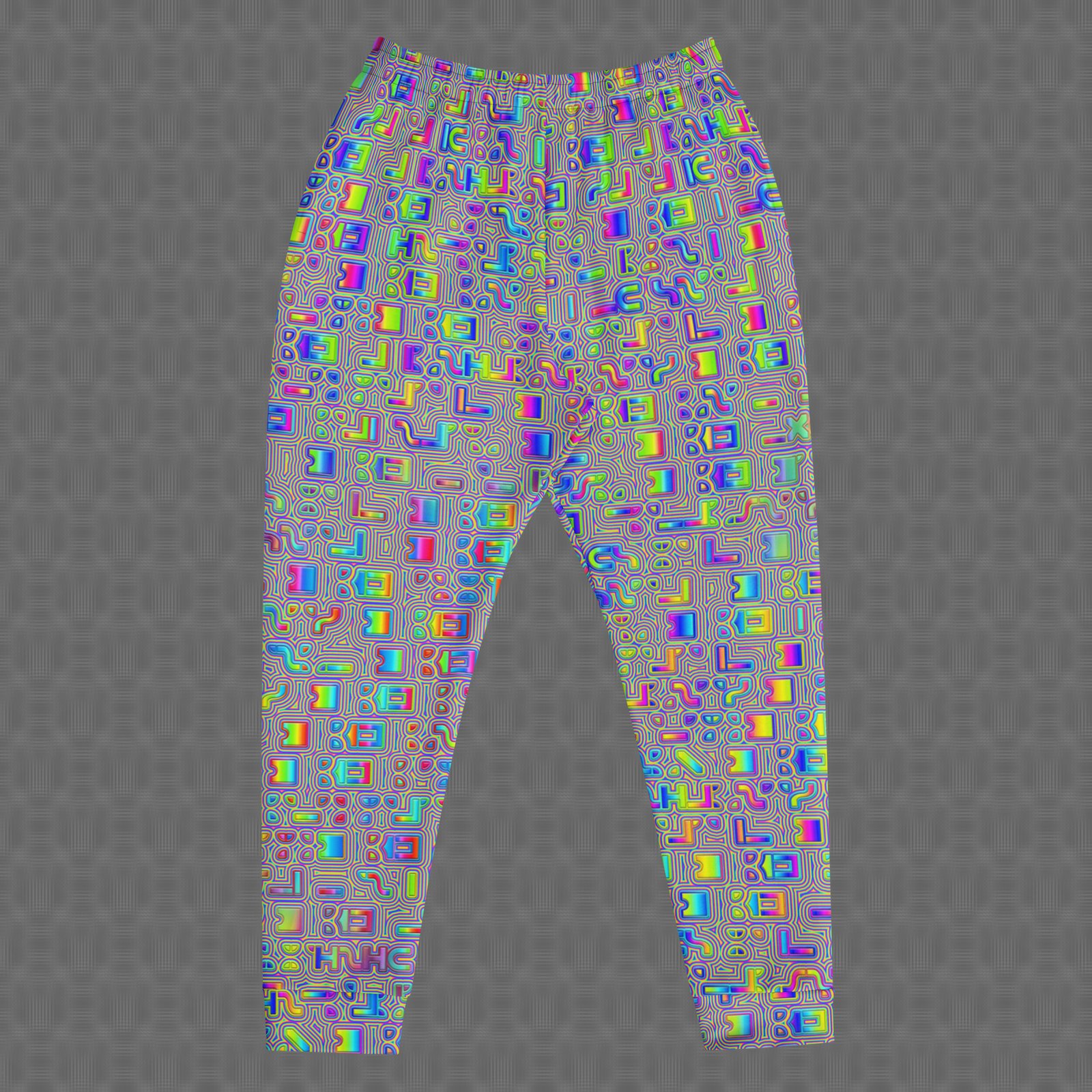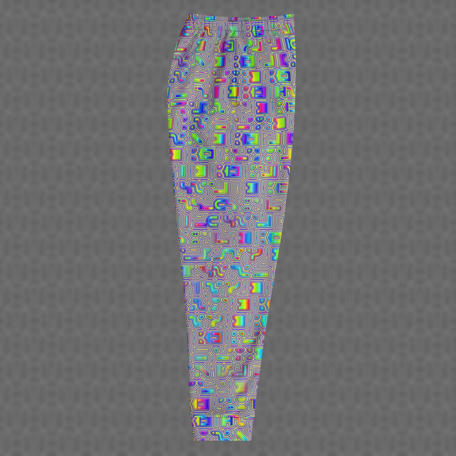 The slim fit and cuffed ankles create a clean, modern silhouette, while deep front pockets and a drawstring waist provide practical, secure comfort. Printed with UV-reactive, fade-resistant color on recycled materials, these joggers are made to moveโ€”whether youโ€™re lounging, dancing, or out on the go.