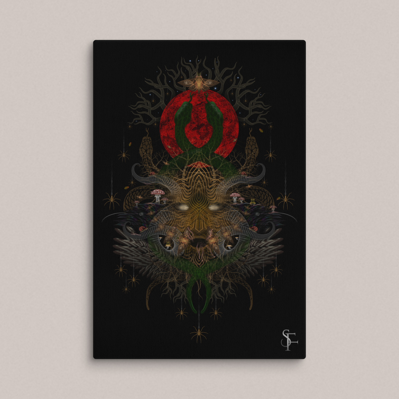 This giclee canvas print is made for spaces that invite both attention and introspection, including altars, meditation rooms, personal sanctuaries, and gathering spaces where atmosphere matters. If you are looking for psychedelic wall art that feels intentional, elevated, and immersive, this piece is built to anchor the room.