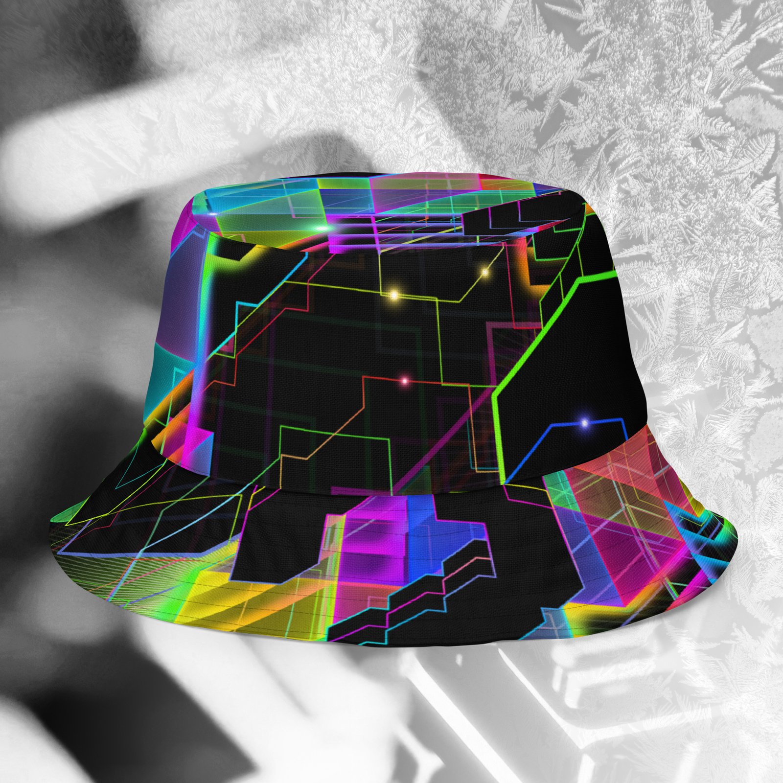 The reversible design offers two bold looks in one, with UV-reactive, fade-resistant prints that stand out under any light. Lightweight, packable, and built for versatility—this hat is ready for festivals, hikes, waterfront days, and everywhere in between. Durable, functional, and sustainably made.