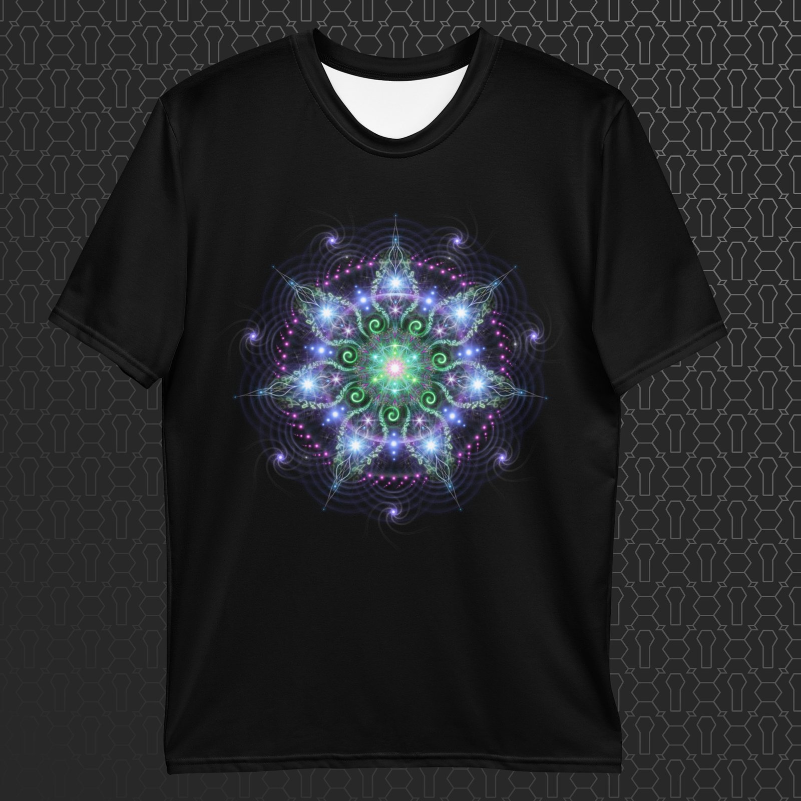 The psychedelic print is UV-reactive and sublimated so the colors stay vivid and alive, no matter how often you wear it. Every shirt is precision cut and hand-sewn so the artwork flows clean across the seams — no broken lines, just pure uninterrupted art. It’s crafted for festivals, streetwear, and everyday adventures. Vivid, comfortable, unapologetically mind-expanding.