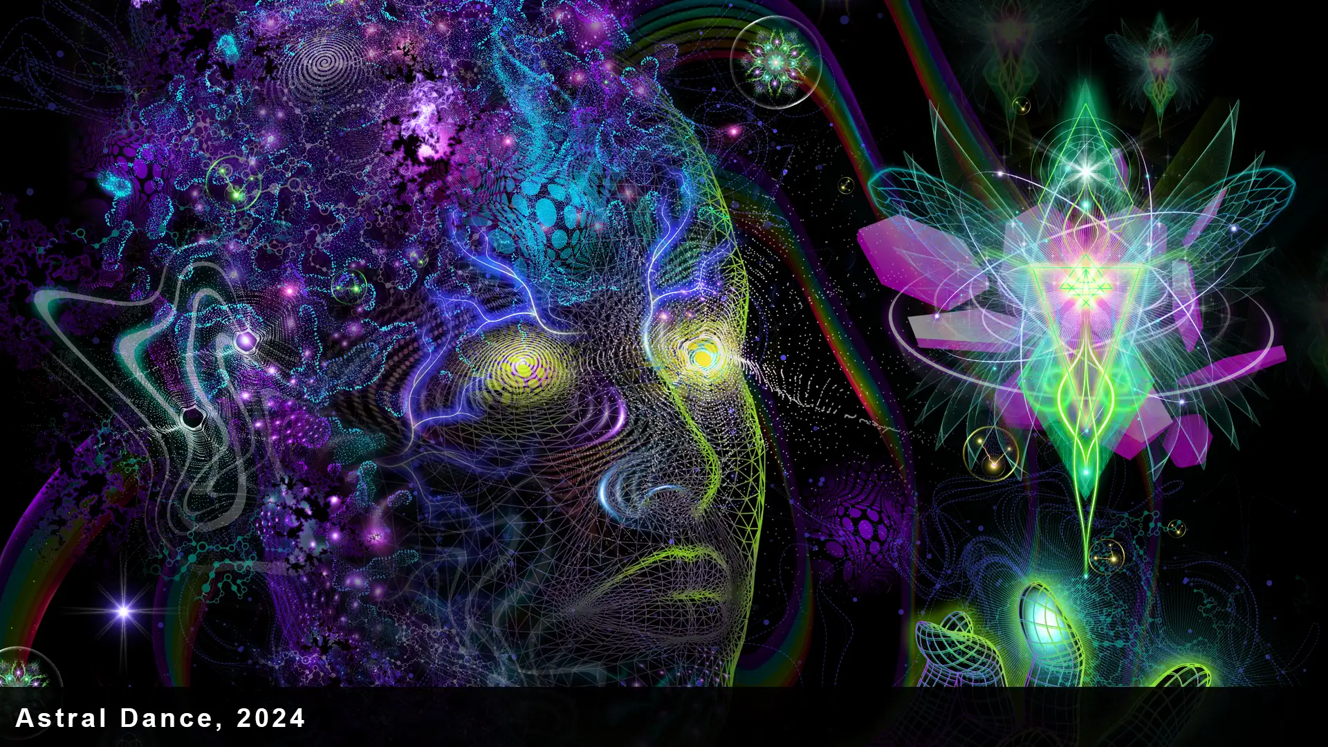 The Void is a body of work centered on compositions emerging from darkness, exploring the act of creation through mythic and symbolic frameworks shared across cultures. Each piece expresses the union of duality, with black space embodying the void and eruptions of color representing the generative spark of creation.